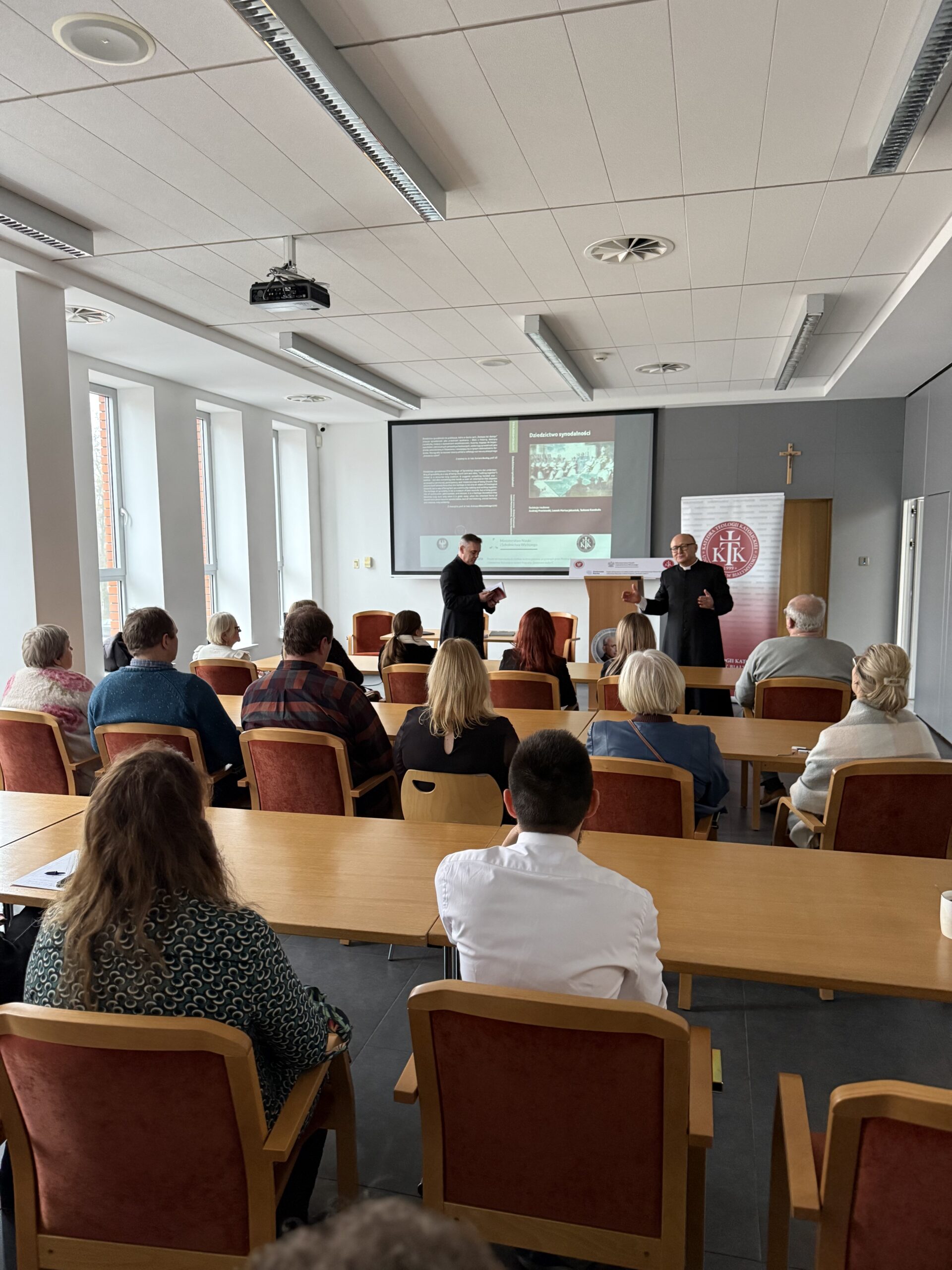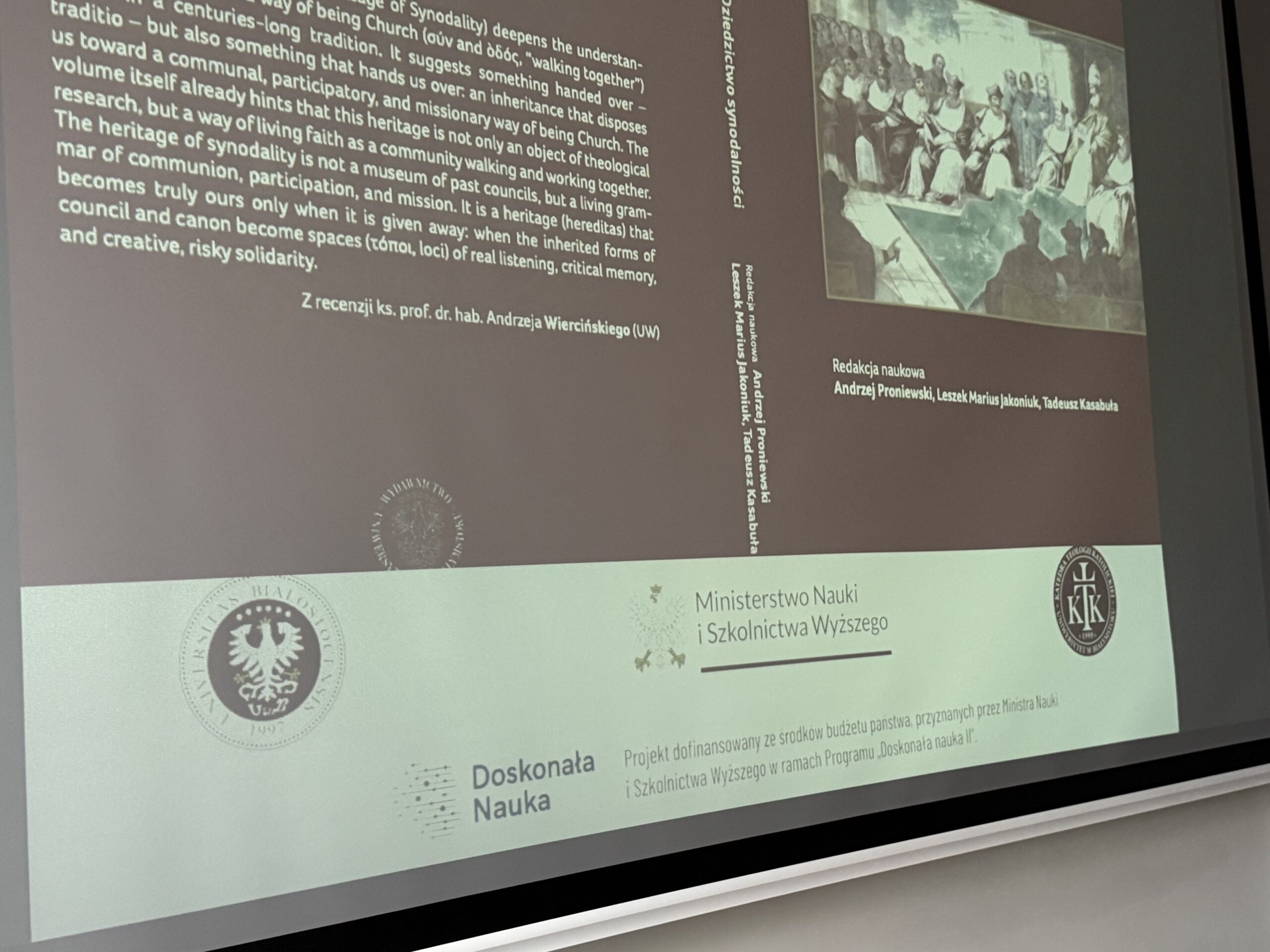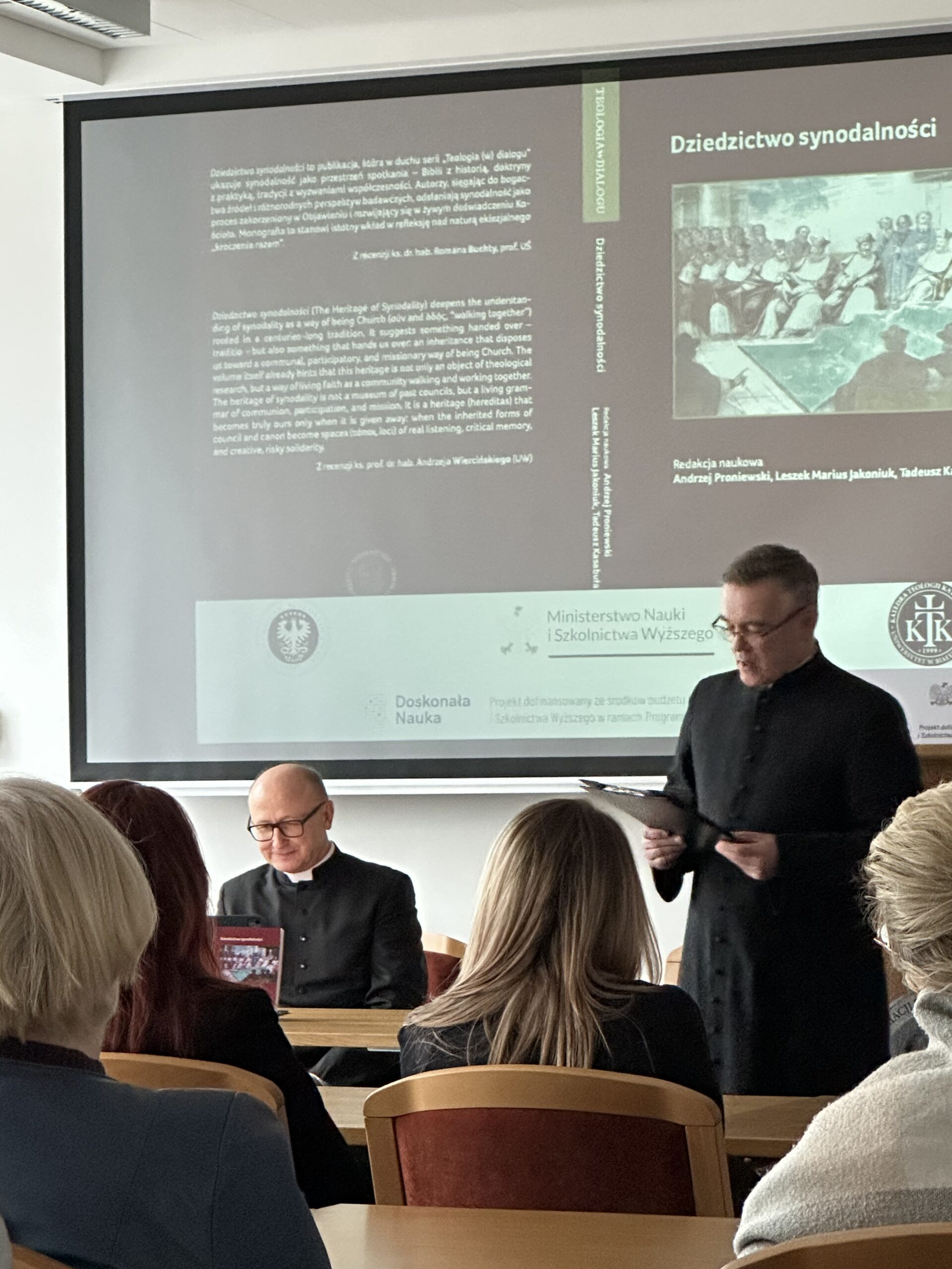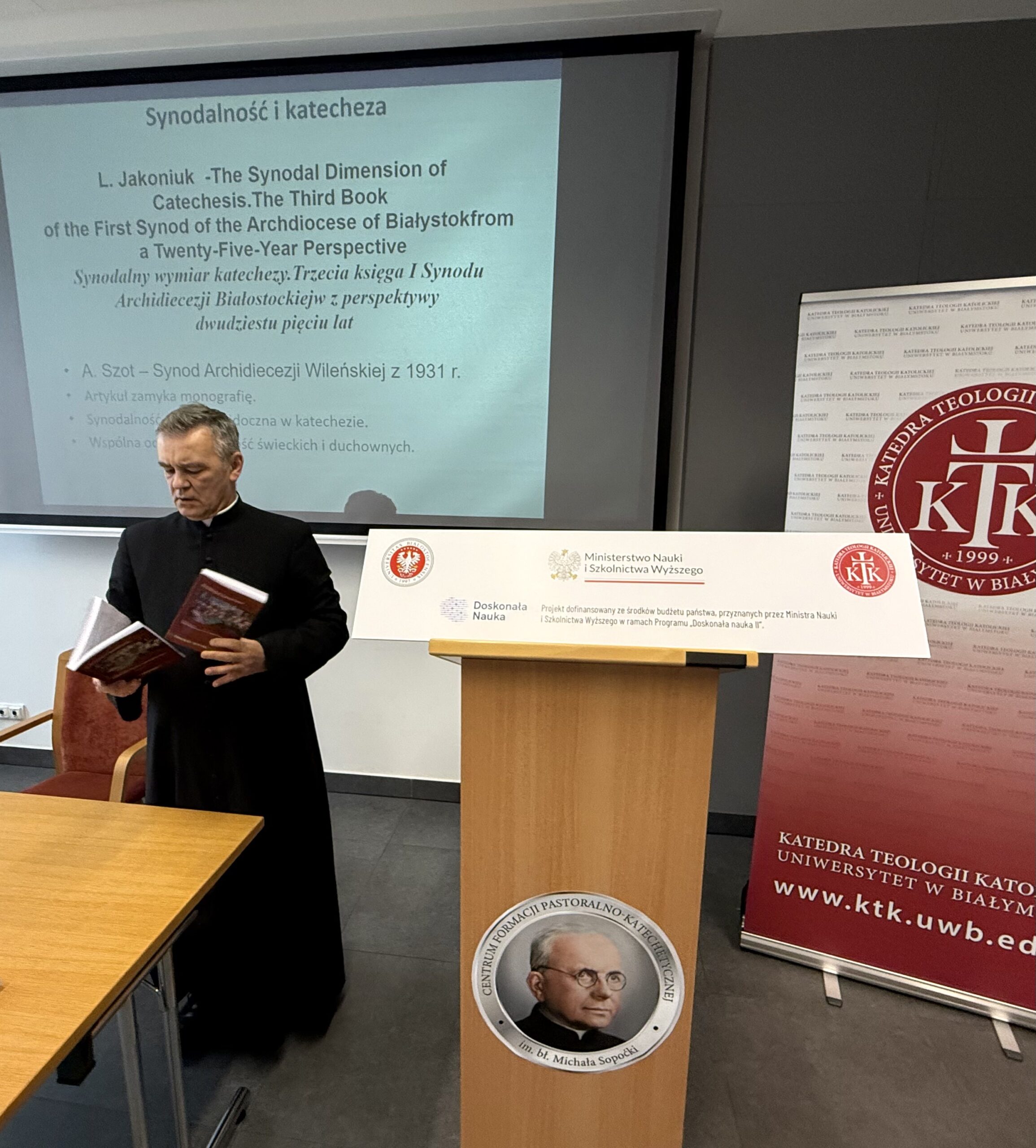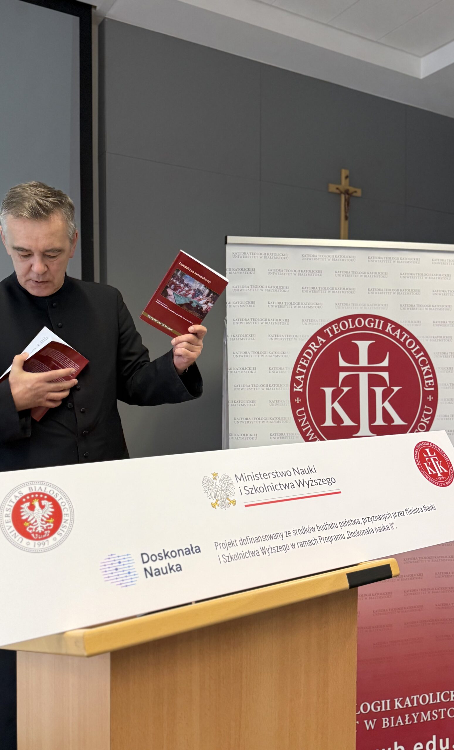 On 20 December 2025, the Exhibition and Conference Centre in Białystok hosted the promotion of the scholarly monograph The Heritage of Synodality, prepared by the Chair of Catholic Theology at the University of Białystok. The event attracted considerable interest, bringing together a large audience that included members of the academic community, clergy, and individuals interested in the issue of synodality in the Church. The meeting also marked the summary and formal completion of the programme “Excellent Science II”, funded by the Ministry of Science and Higher Education.