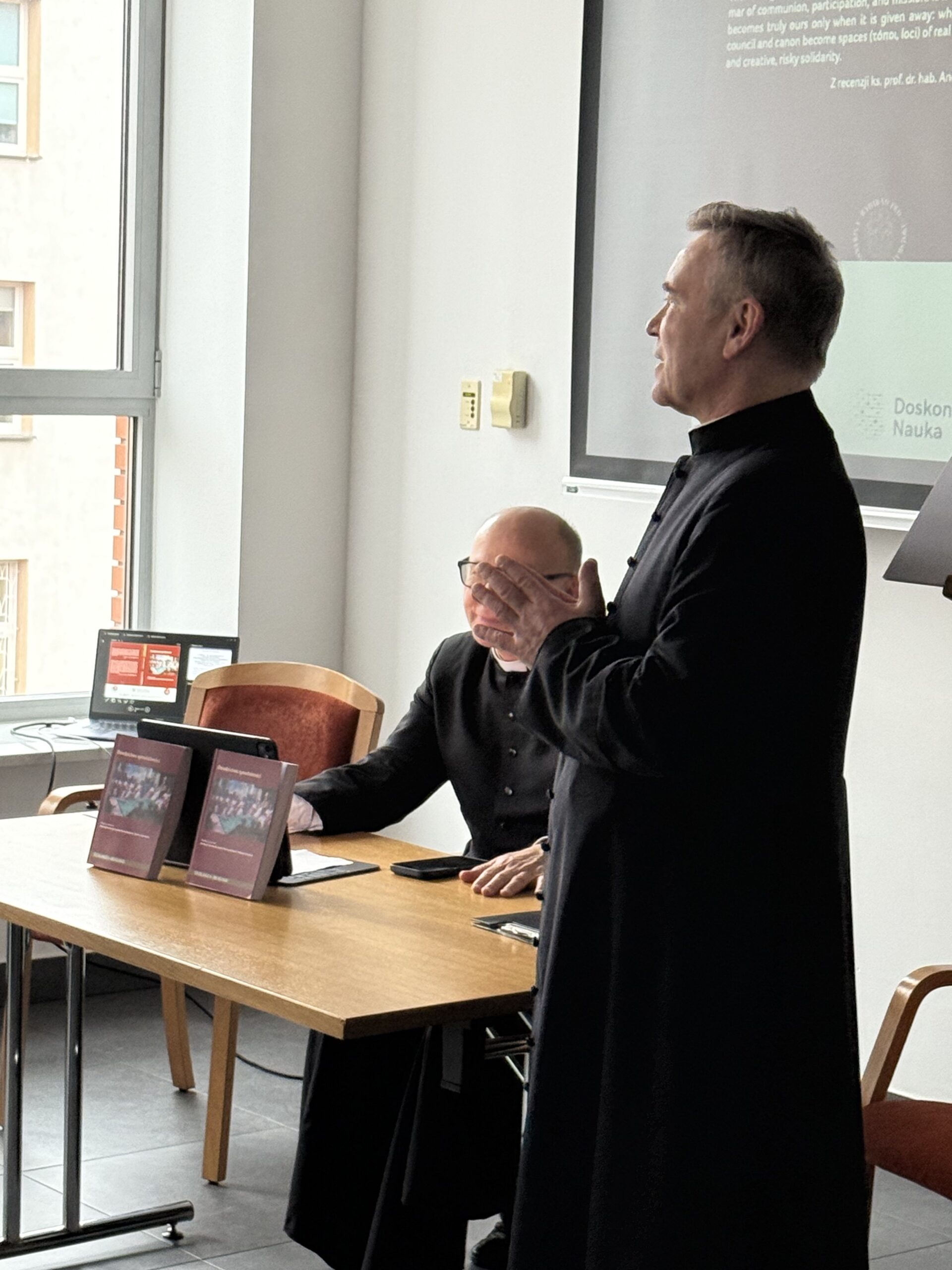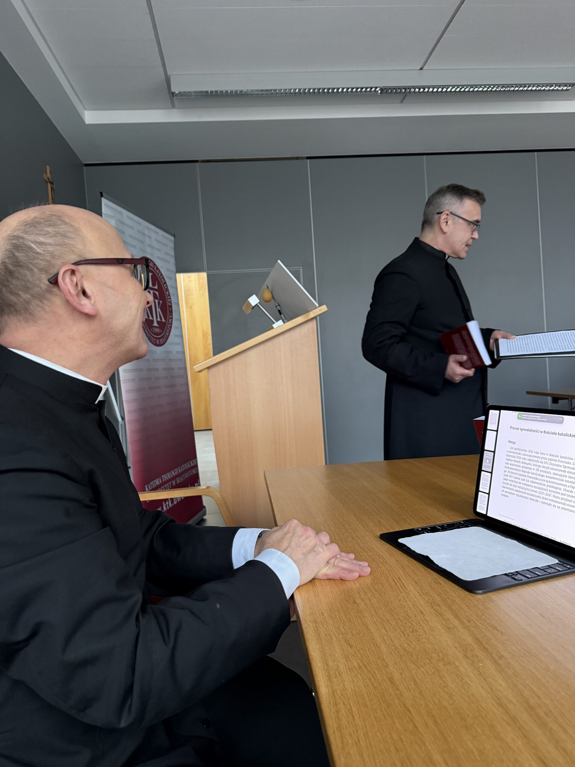During the promotion, Rev. Andrzej Proniewski, Rev. Leszek Jakoniuk, and Rev. Tadeusz Kasabuła—the editors of the volume and authors of individual chapters—presented the main assumptions of the publication. They emphasized that synodality should not be understood merely as a response to current challenges facing the Church, but rather as a path deeply rooted in its biblical and historical tradition. The monograph traces the development of the idea of synodality from apostolic times, through the era of the Church Fathers and the Middle Ages, up to the present day.