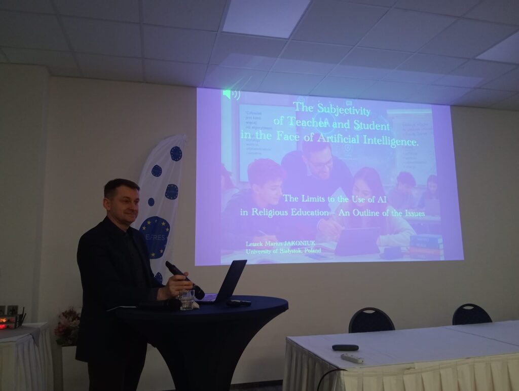 W dniach 8–12 kwietnia 2026 roku w Pradze odbyło się Europejskie Forum dla Edukacji Religijnej w Szkole. W wydarzeniu wziął udział ks. Leszek Marius Jakoniuk pracownik Katedry Teologii Katolickiej Uniwersytetu w Białymstoku, który podczas sesji plenarnej wygłosił w języku francuskim referat pt. „Podmiotowość nauczyciela i ucznia wobec sztucznej inteligencji. Granice zastosowania AI w edukacji religijnej – zarys problematyki”.